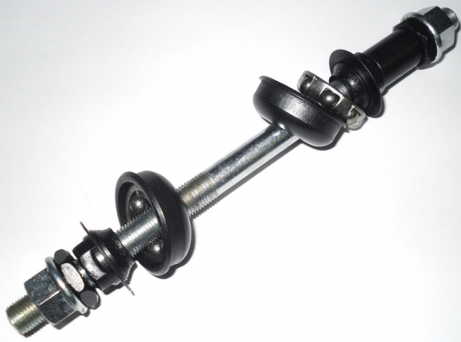 Код товара: 86345Ось переднего колеса MTB черн с пром подшип под эксц 108 мм KL-900